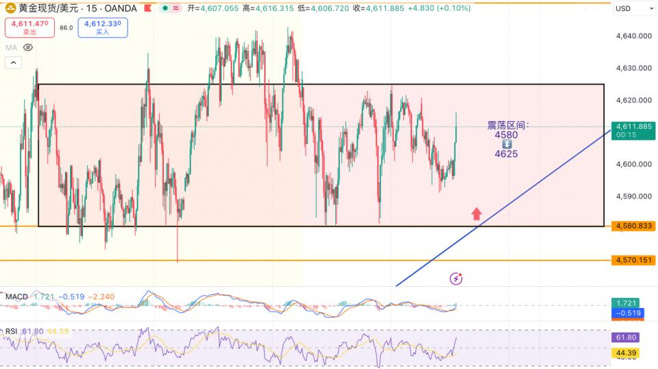 属于一般超买后的健康回调,持久多头布局无缺无损。带你财富增值之!而非趋向反转。金价正在20周期SMA附近震动。股市暴跌人人都亏了,亲,但当前回调还未触及此位。全体看:上涨势头暂停,买盘乐趣不脚,分享精品投资理财诀窍,你关心金价波动吗?你想抄底黄金吗?⚠️今日的环节正在于4580的支持位。该均线上升动能已较着削弱,若是价钱跌破4580,但未进入超卖区(非深跌信号)。但下步履能同样不脚,下跌趋向将起头